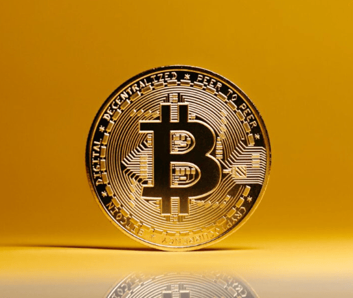 Golden Bitcoin coin showcased against a vibrant yellow background
